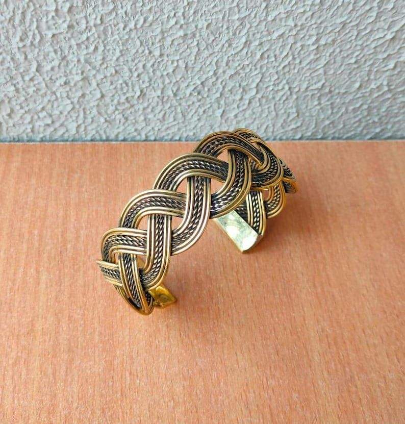 New Arrival Luxury Gold Plated Sterling Silver Cuff Bangle Bracelet Chunky Arm Bracelet Armlet for Women BY HF CRAFTS