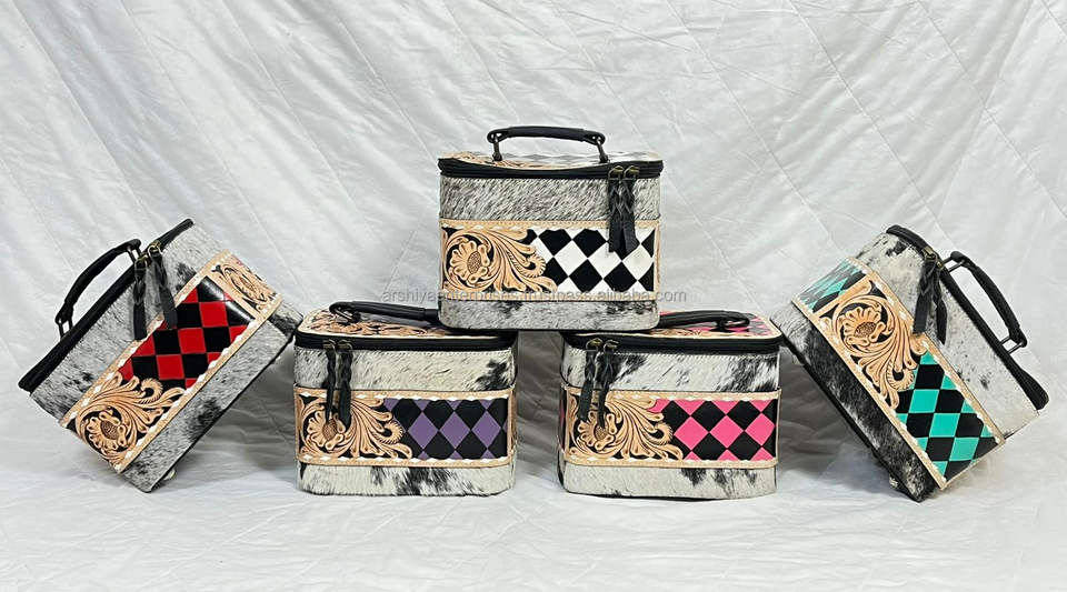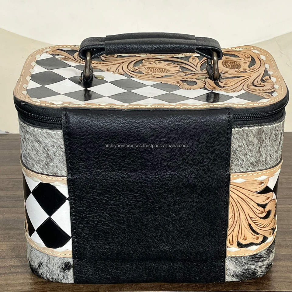 New Arrival Luxury Hand Tooled Genuine Leather Jewelry Storage Cases Floral & Checkered Pattern Velvet Interior Travel Organizer