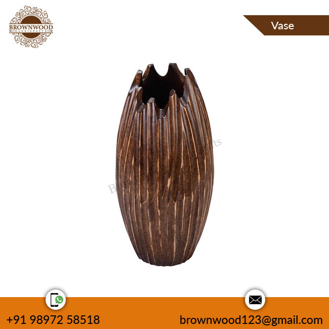New Arrival Mango Wood Hand Carved Design Flower Vase Wooden Vase for Home Living Room Wedding Decor Center Piece Decoration Vas