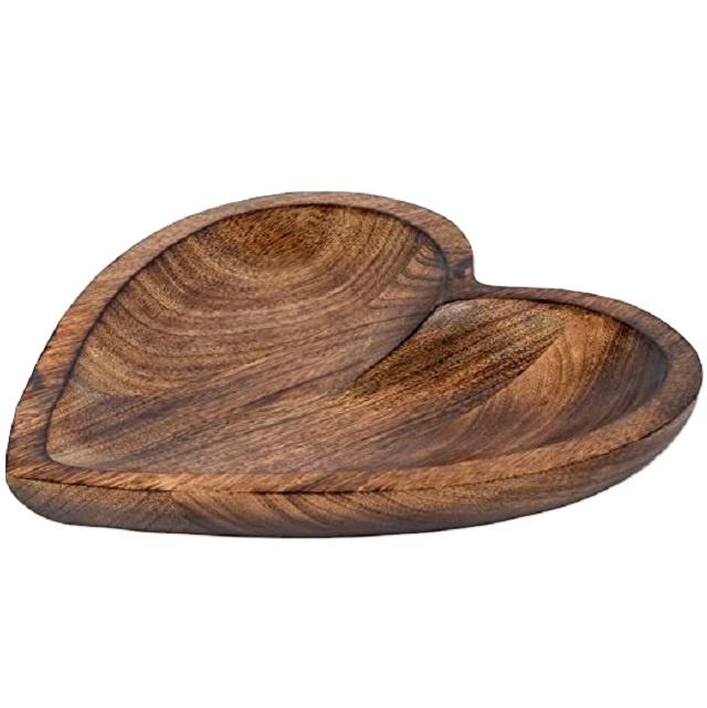 New Arrival Mango Wood Heart Shaped Bowl Fruits Storage Platter Wedding Candy Serving Dish Picnic Table Decorative Bowl
