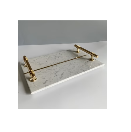 New Arrival Marble Stone Base High Quality Serving Round Tray With Handle for Christmas Decor Food Serving in Restaurant Hotel