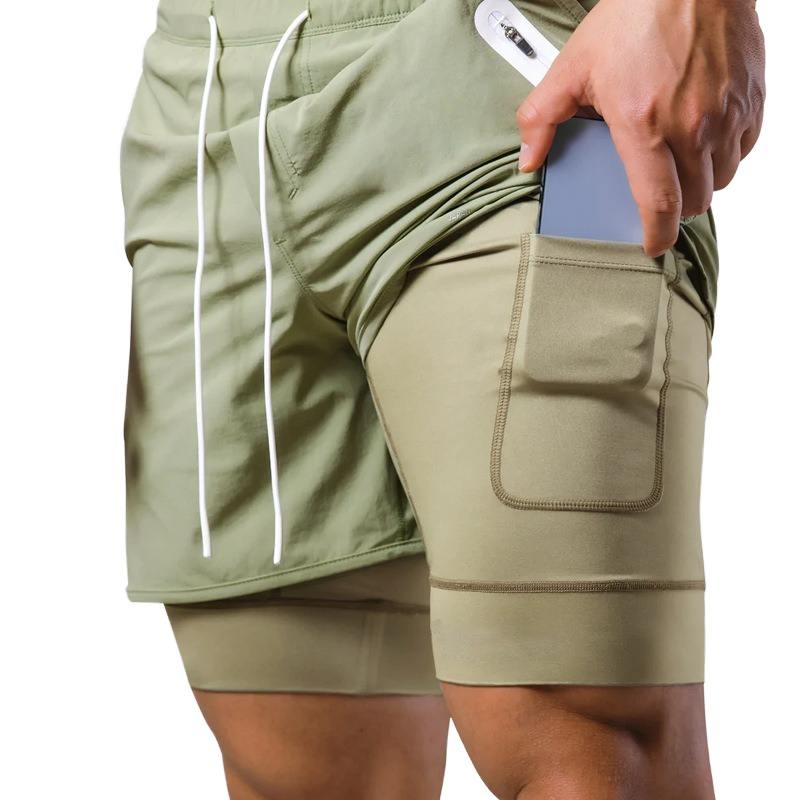 New Arrival Men Sporty Quick Dry Breathable High Waist Eco-Friendly 2-in-1 Running Training Shorts with Drawstring