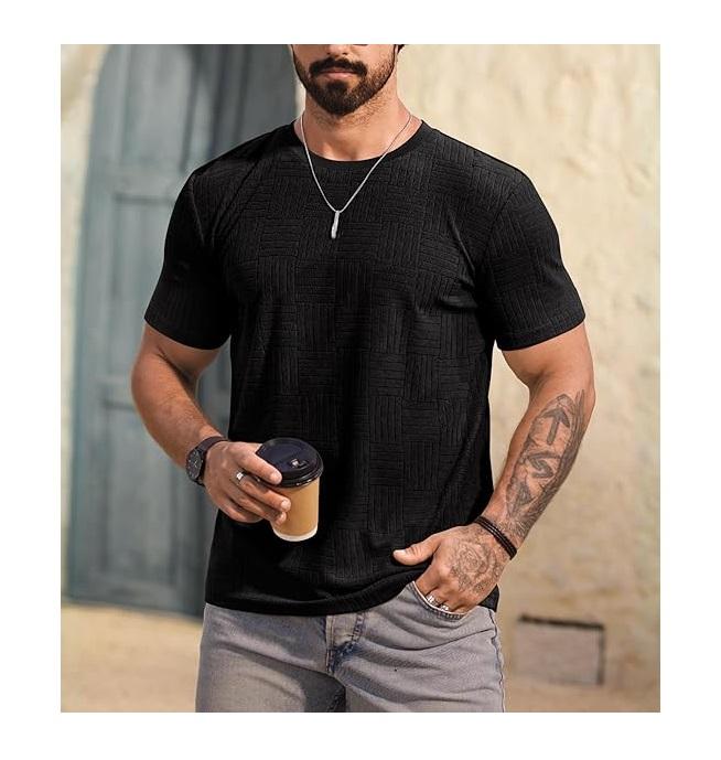 New Arrival Men's 100% Cotton Short Sleeve Casual T-Shirt Round Neck Shoulder Slope Neck Tape Solid Color From Bangladesh