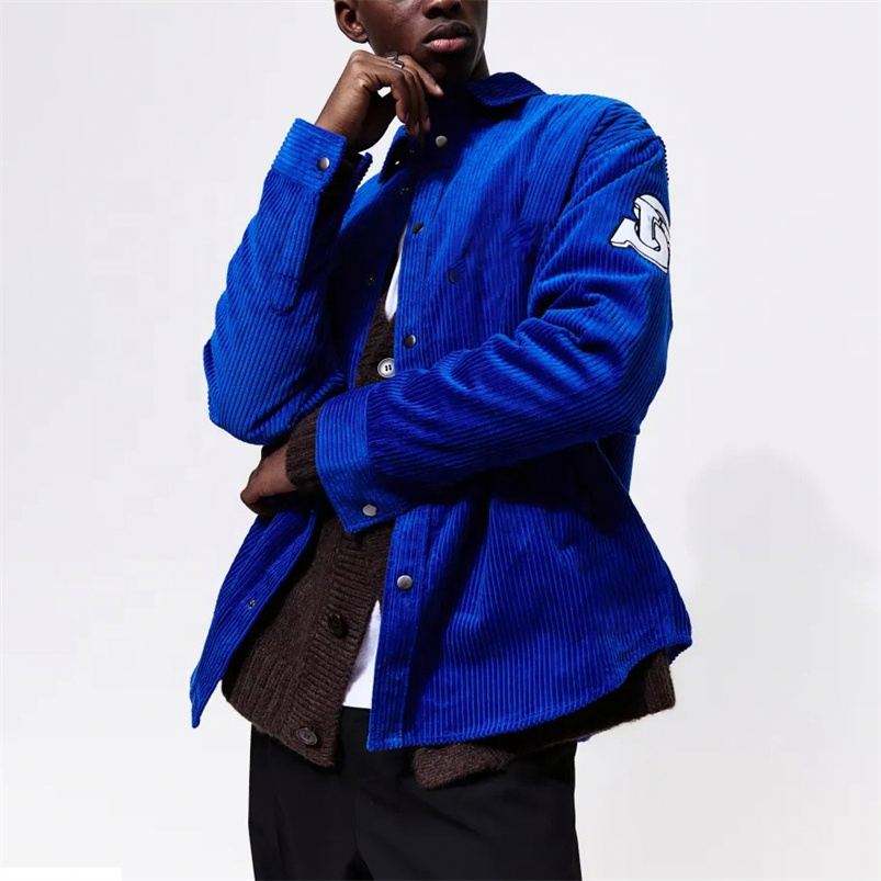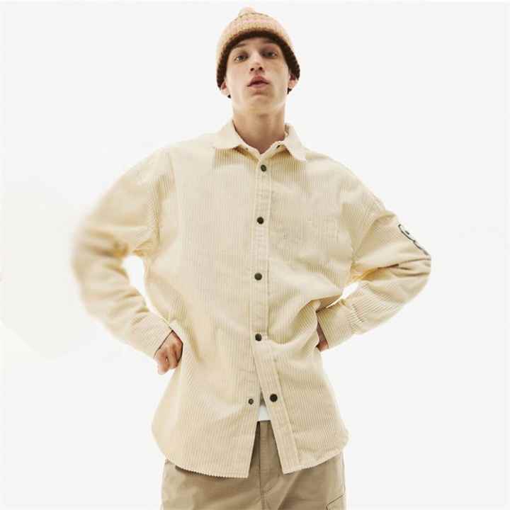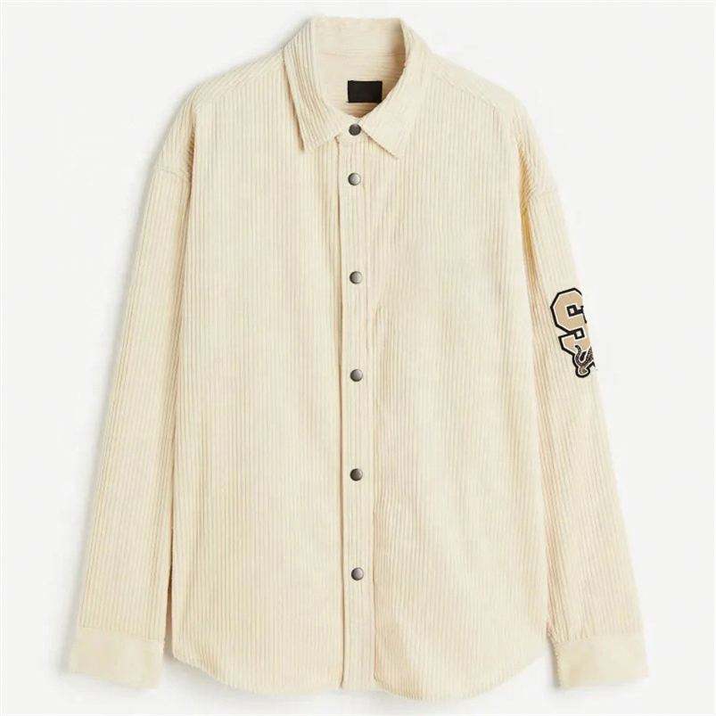 New Arrival Men's Casual Corduroy Oversized Fit V-neck Full Sleeve Shirt Custom Embroidered Breathable Eco-Friendly for Autumn