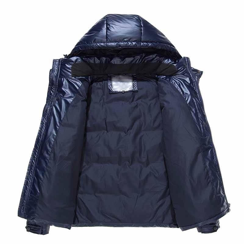 New Arrival Men's Thick Shiny Puffer Jacket With Hood Waterproof Down Coat Outdoor Winter Season Streetwear Style Puffer Jacket