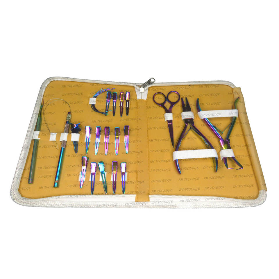 New Arrival Metal Material Custom Logo Hair Extension Tools and Beads Jar Small Thread Kit Set With Leather Case