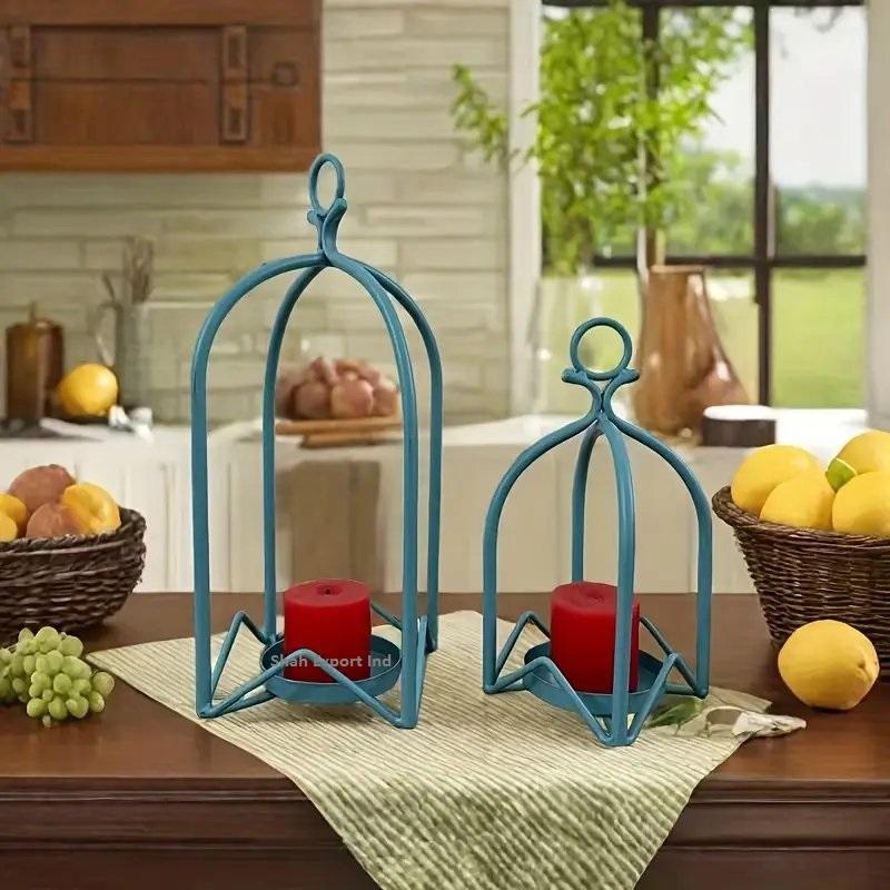 New Arrival Metal Wire Candle Lantern Vintage Style Turquoise Color For Home Kitchen Dining Table Decorative Lantern
