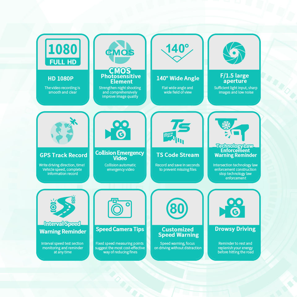 Night Vision, WDR, Full Color, park MODE, Loop recording, Build-in GPSFunction