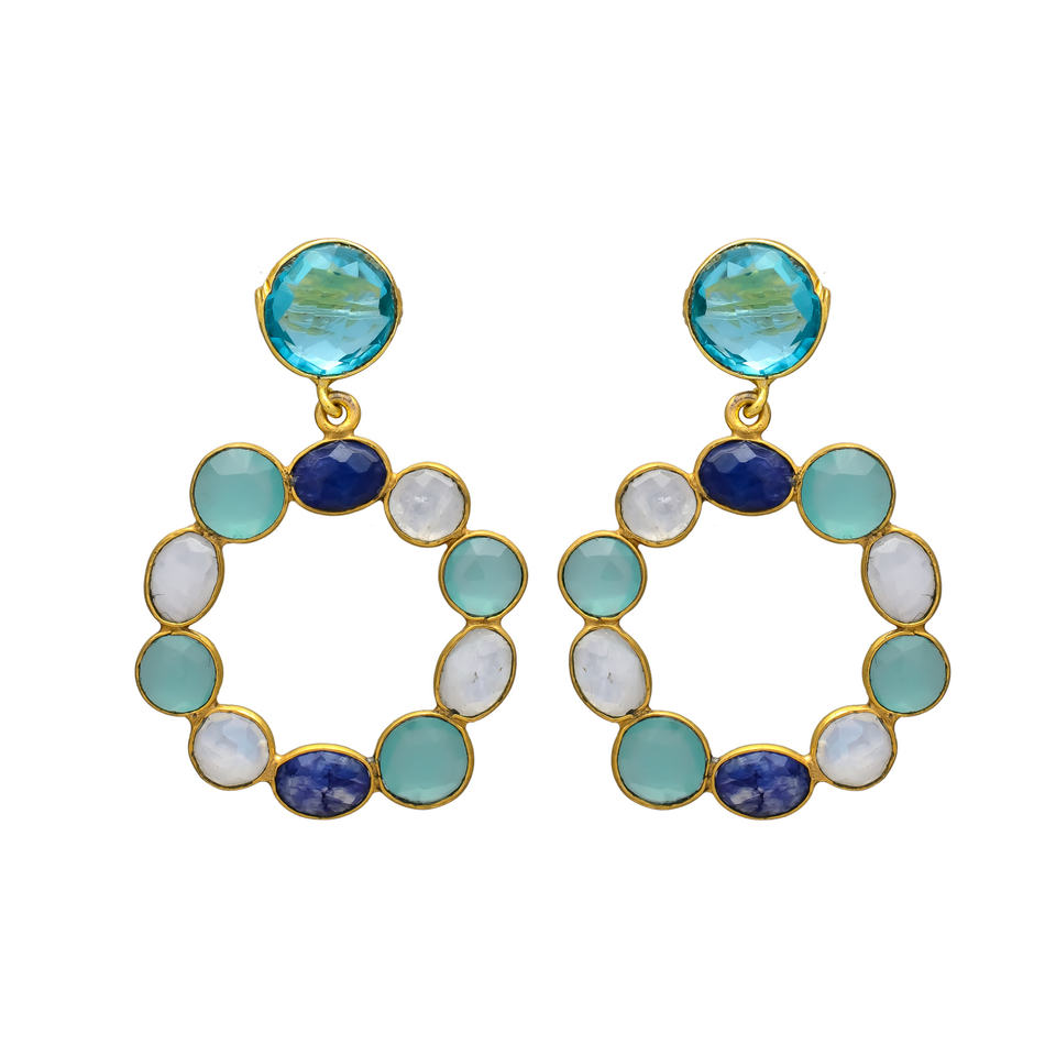 New Arrival Mini Multi Gemstones Circular Blue Quartz Stud Earring Set
