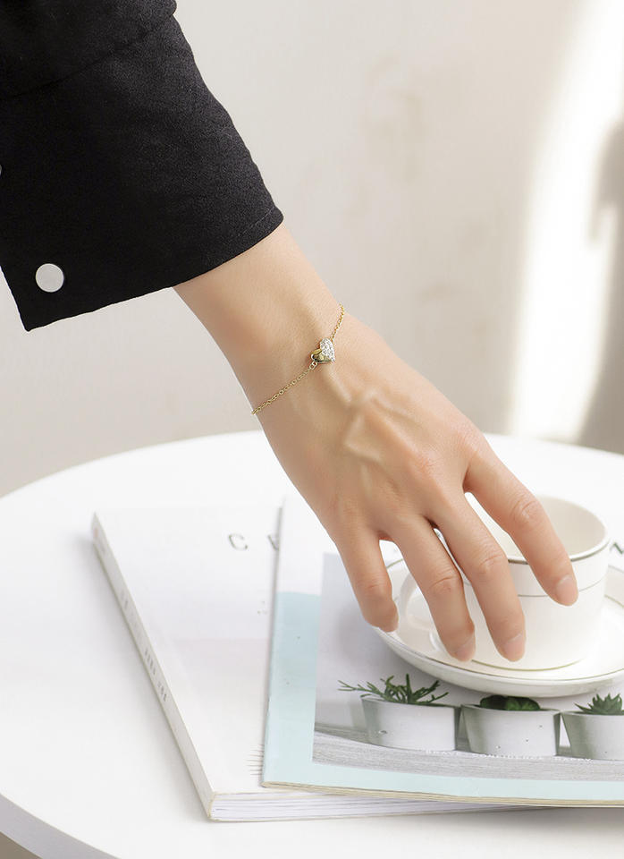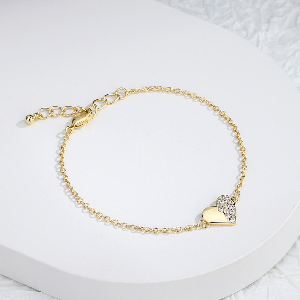 New Arrival Minimalist Design Gold Plated Heart Zircon Charm Bracelet Tiny Link Fashion Bracelets in Stock