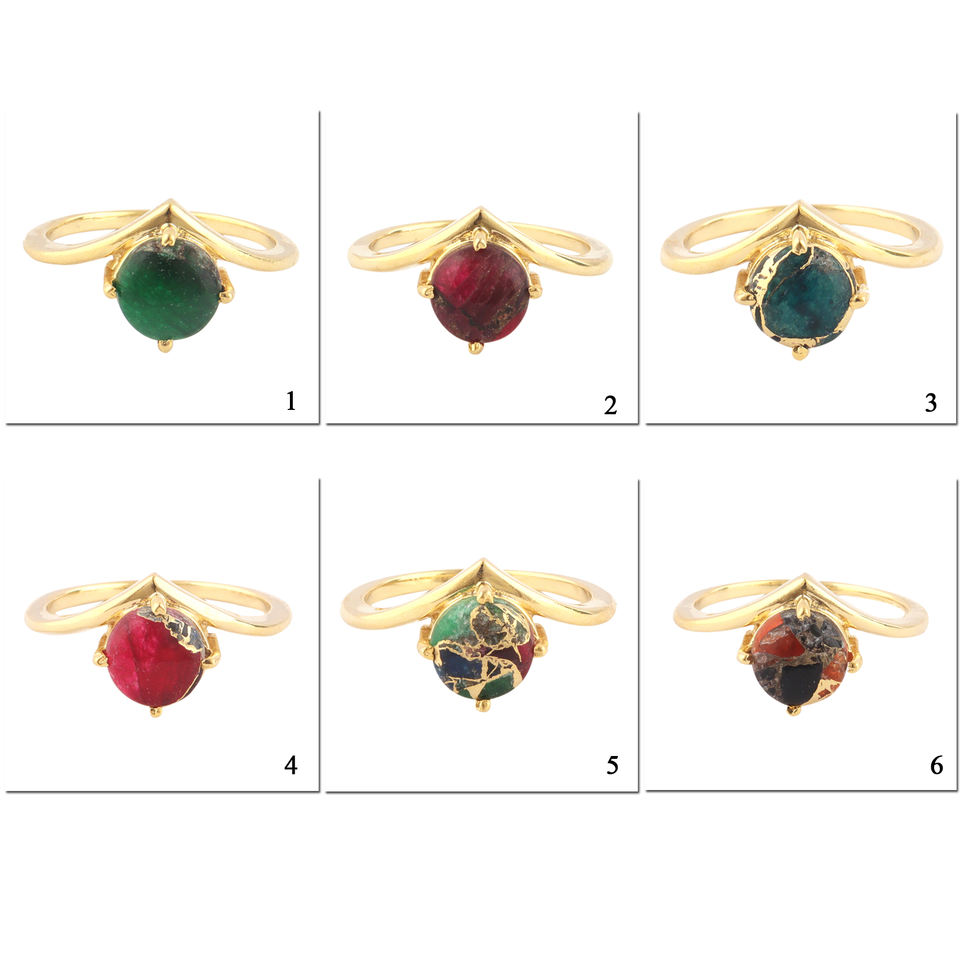 New Arrival Minimalist Mohave Emerald Copper Turquoise Statement Rings Gold Plated Prong Set Stackable Ring 8US Weddings Parties