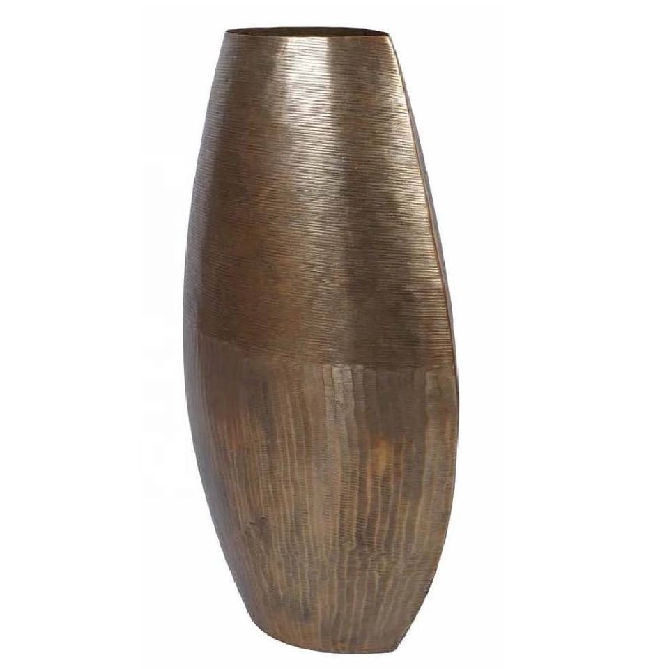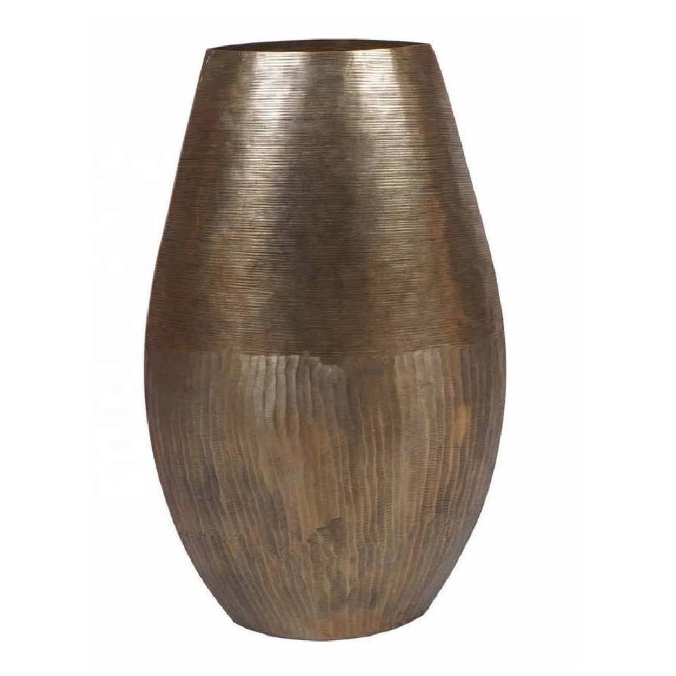 New Arrival Modern Textured Oval Vase Antique Brass Finish Aluminium Home Decoration Tabletop Vase for Living Room Bedroom
