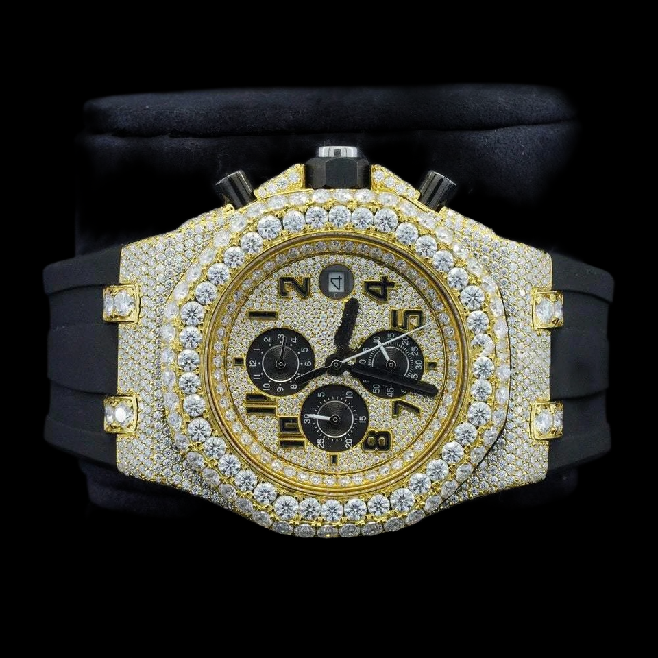 New Arrival Moissanite Diamond Chronograph Fancy Black Rubber Band Stylish Half Iced Out Diamond Unisex Classy Wrist Watch