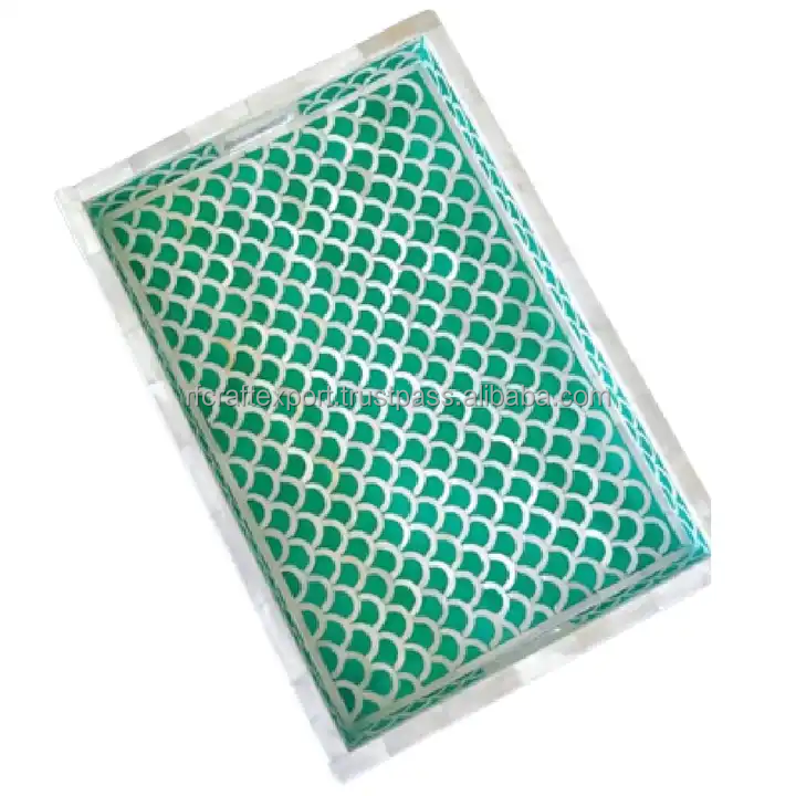 New Arrival Mother of Pearl Resin Inlay Serving Tray with Handle Ramadan Eid Gift From India by RF Crafts