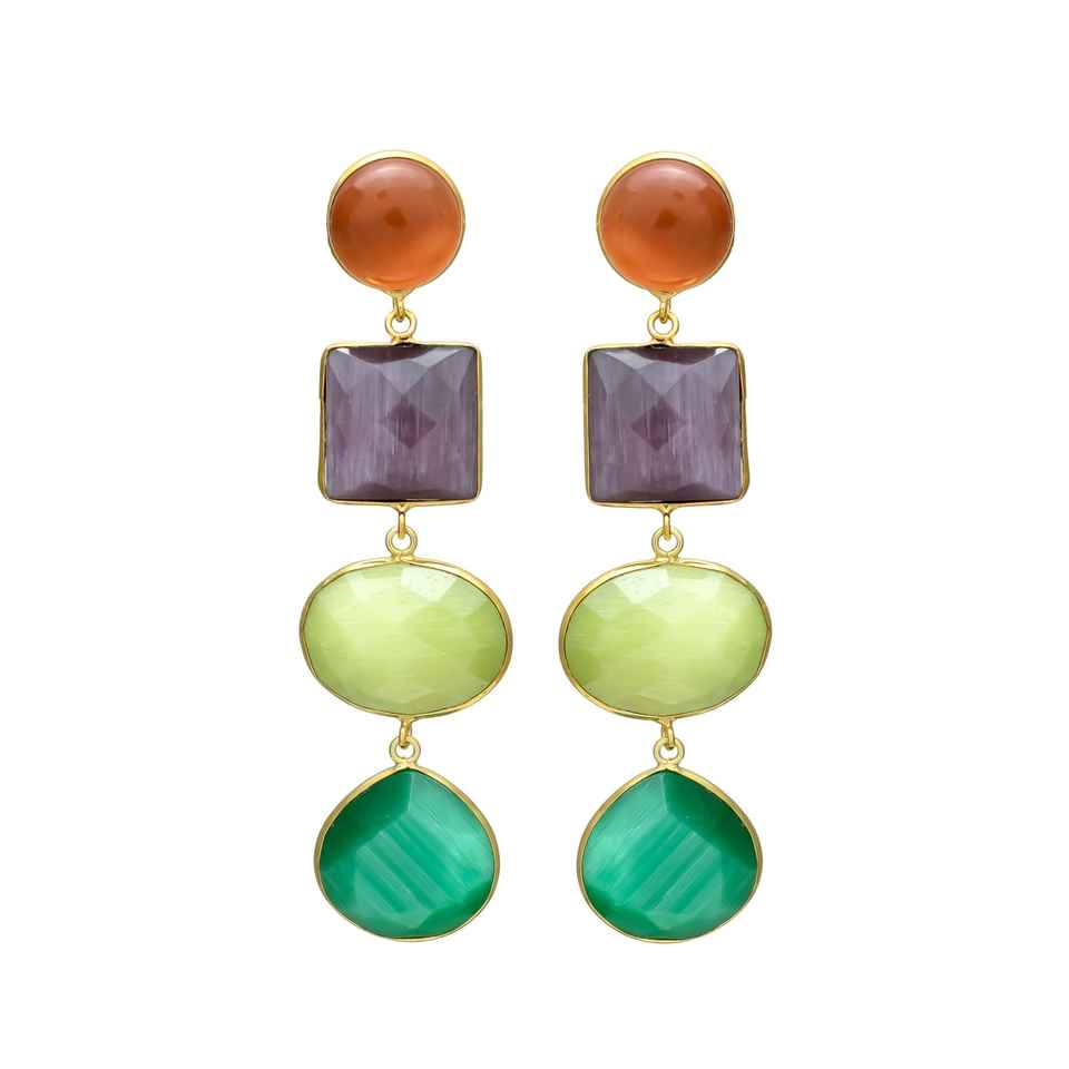 New Arrival Multi-Gemstone Dangle Earrings in Gold-Plated: Elevate Your Style