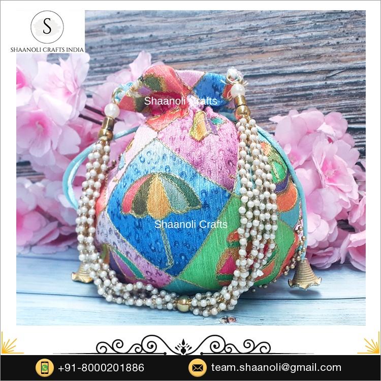 New Arrival Multicolor Handmade Indian Potli Bags With Beads Handle for Woman Wedding Return Gift Bags Wedding Favors Bags