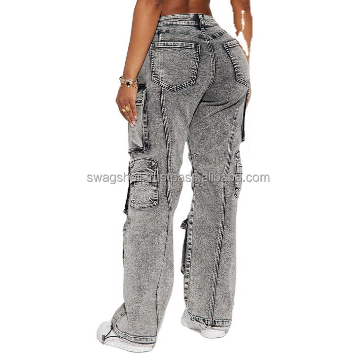 New Arrival OEM Custom High Quality Jeans Print With Pockets Oversize Plus Size Cotton Cargo Baggy Denim Jeans for Women Oem