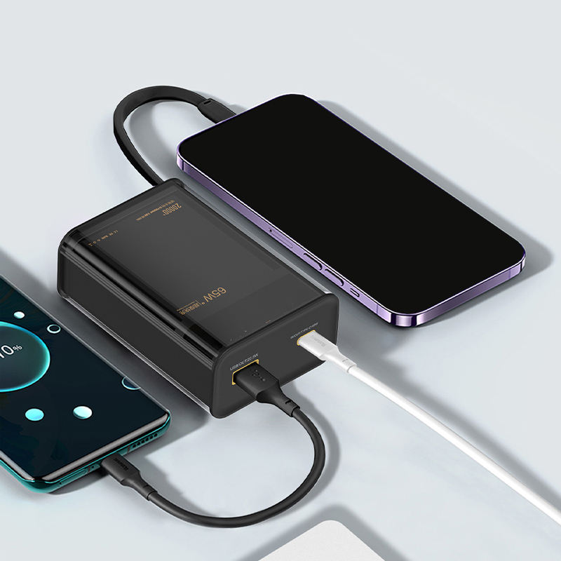 New Arrival PD65W Fast Charging 20000mAh High Capacity Built in Cable Power Bank With LED Display for Laptop
