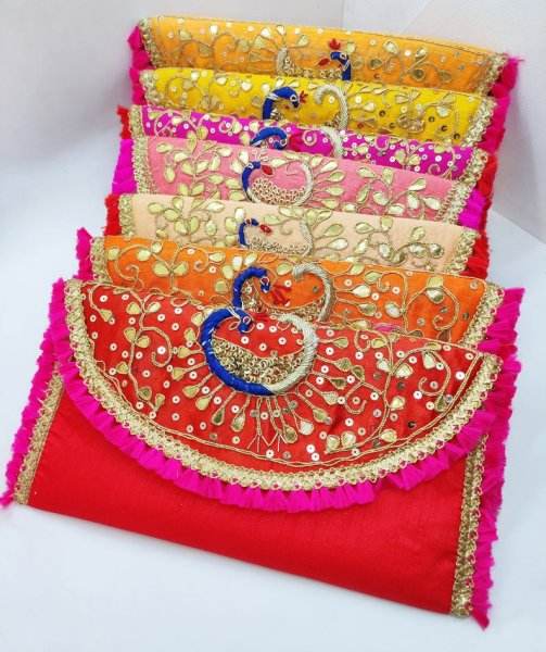 New Arrival Peacock Design Embroidery Kraft Paper Envelopes Durable Mobile Case Cash Enclosure Return Gift Pouches for Diwali
