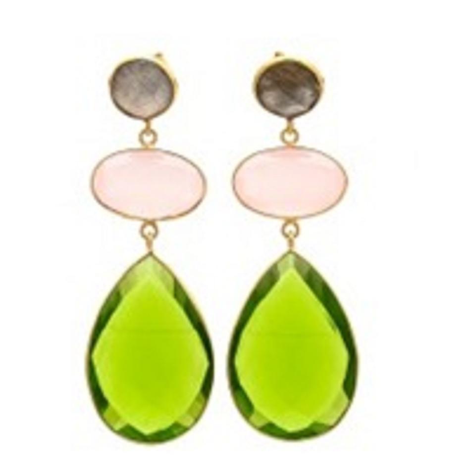 New Arrival Peridot Quartz Milky Chalcedony & Labradorite Gemstone 925 Sterling Silver Pear And Oval Shape Earrings