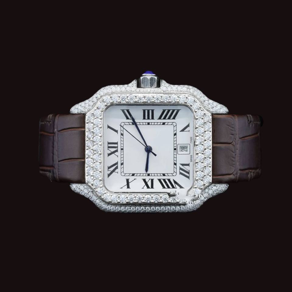 New Arrival Premium Analog Mechanical Watch Square Glass Half Iced Moissanite Diamond Luxurious Hip Hop Style Exclusive Watch