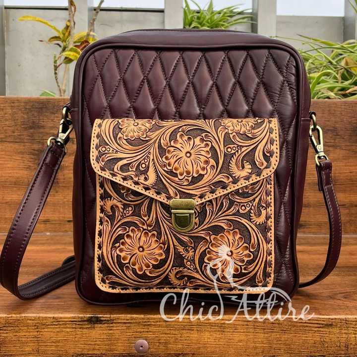 Hand Tooled Quilted Leather Women's Crossbody Bag
