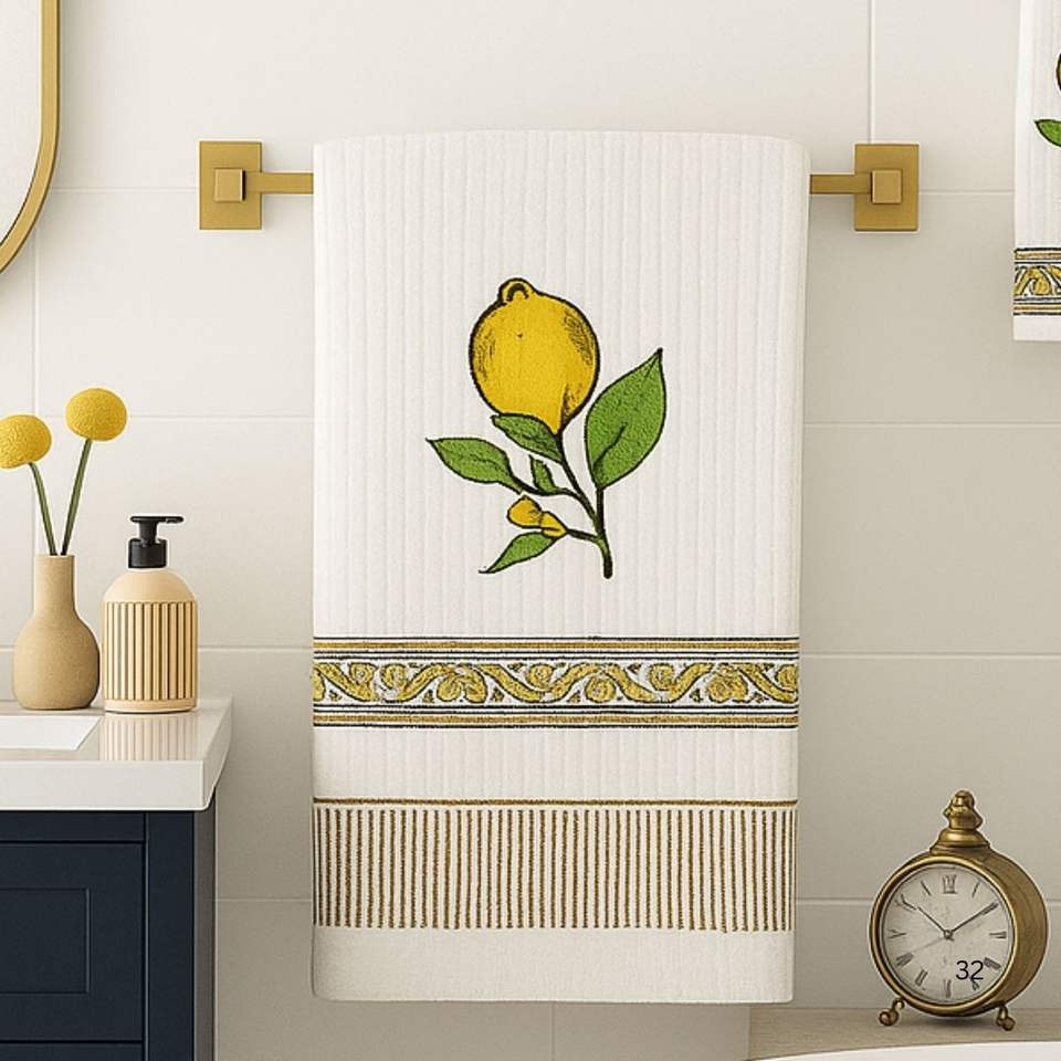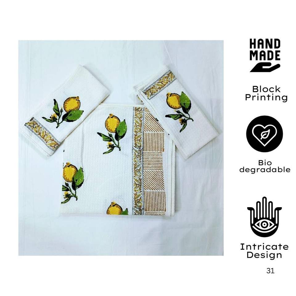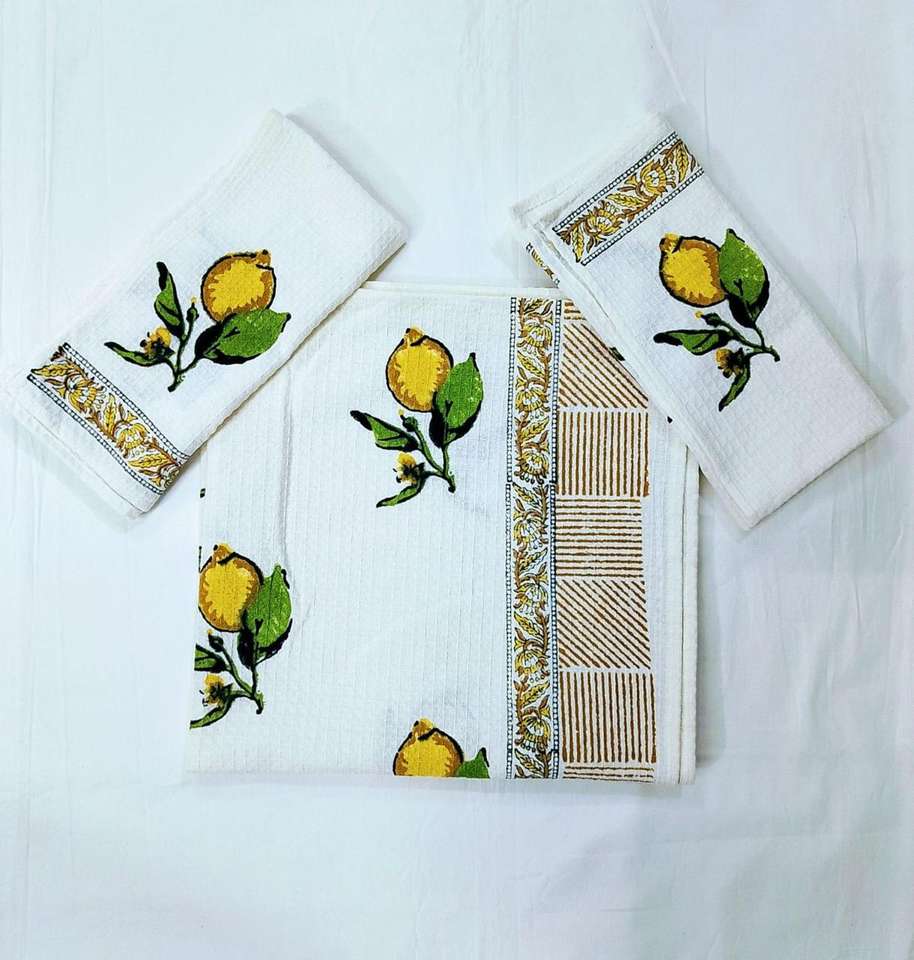 New Arrival Premium Jaipur Hand-Printed Golf Towel Set Waffle Organic Cotton Soft Durable Quick Dry Floral Light Weight