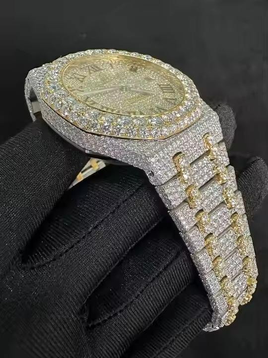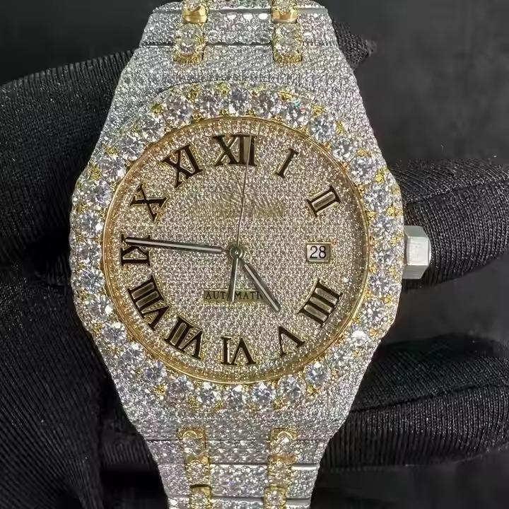 New Arrival Premium Quality Fully Iced Two-Tone Moissanite Diamond Watch Elegant Roman Dial Stainless Steel High Quality
