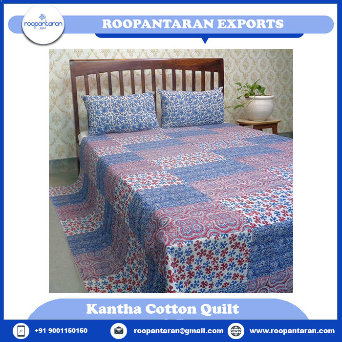 New Arrival Queen Size Kantha Quilt Indian Hand Block Printed Organic Cotton Patchwork Best Quality for Wholesale
