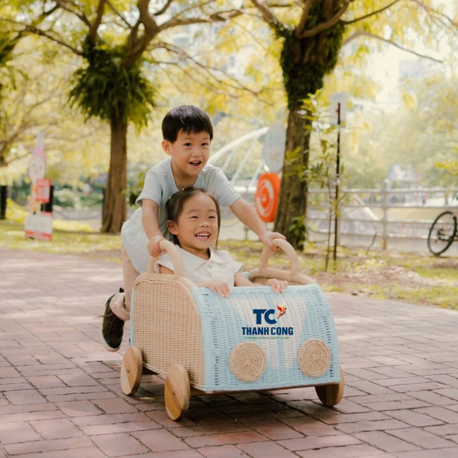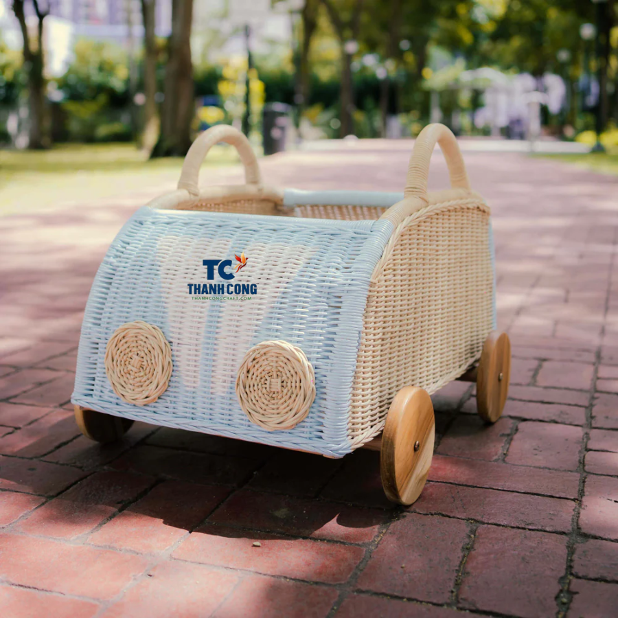 New Arrival RATTAN CAR TROLLEY Best Selling RATTAN CAR STORAGE BASKET Convenient Stylish toys for kids Made in Vietnam