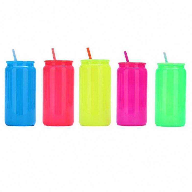 New Arrival RTS 16Oz Single Wall Vacuum Colorful Plastic Jar Soda Can With Lid Color Straw for Party Gift