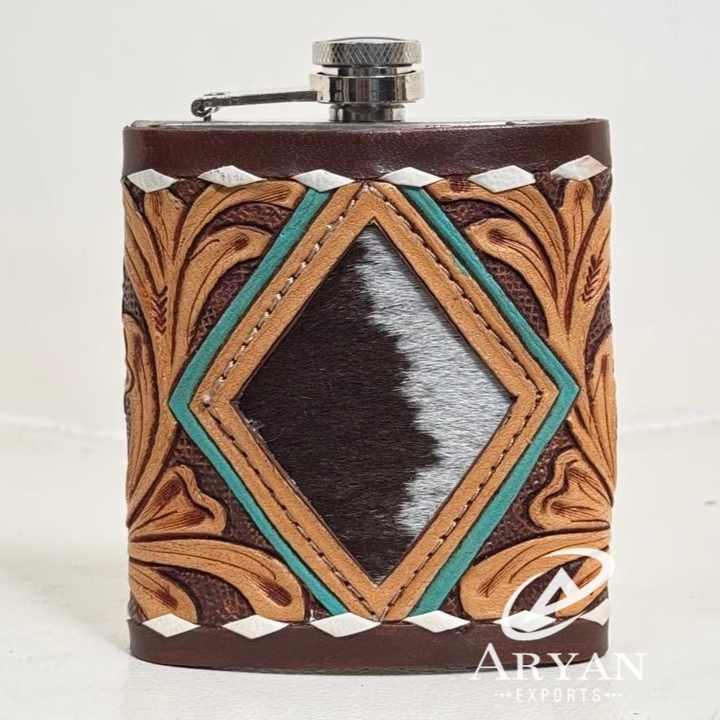 Hand Tooled Cowhide Leather Stainless Steel Hip Flask