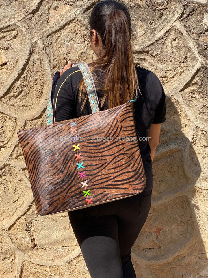 New Arrival Real Animal Print Cowhide Leather Women Tote Bags High Quality Vintage Style Large Capacity Cowgirl Shoulder Purses