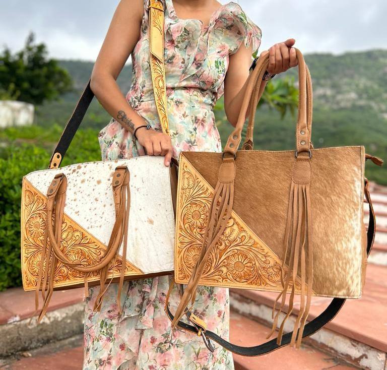 Product name:Western Hand Tooled Leather Tassel Tote Bag