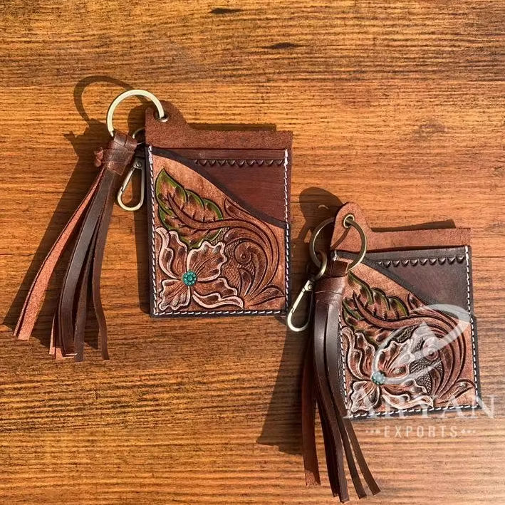 Type:Stylish Floral Tooled Leather ATM Card Holder Split Keyrings
