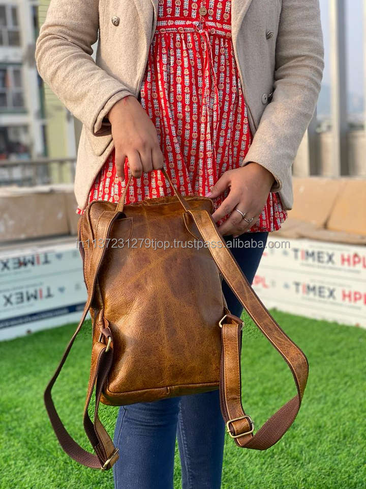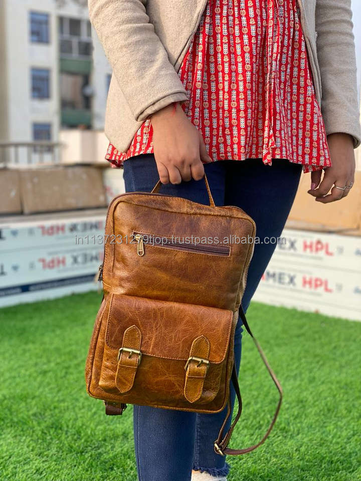 New Arrival Real Handmade Full Grain Crunch Leather Travel Backpacks Personalized Unisex Rustic Brown Vintage Laptop Backpacks