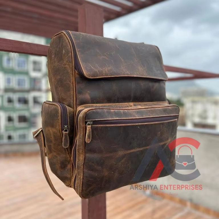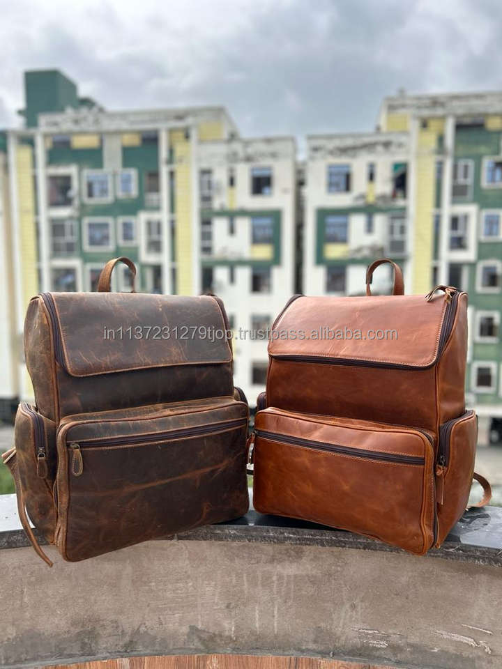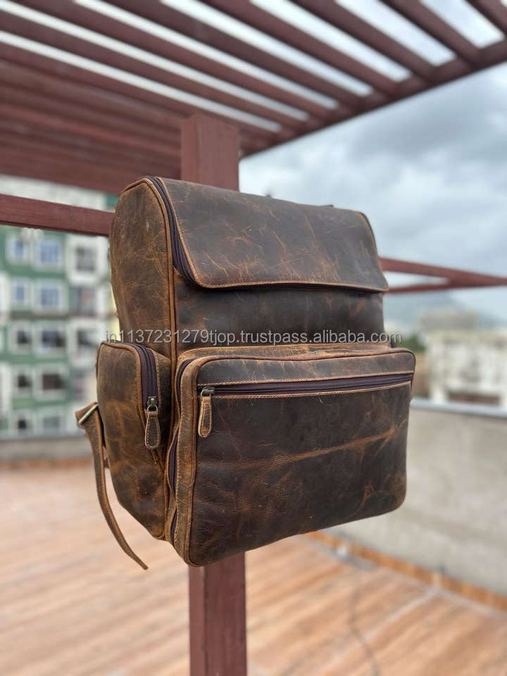 New Arrival Real Vintage Brown Crunch Leather Oversize Travel Backpack Personalized Unisex Hipster Cushion Padding Leather Bags