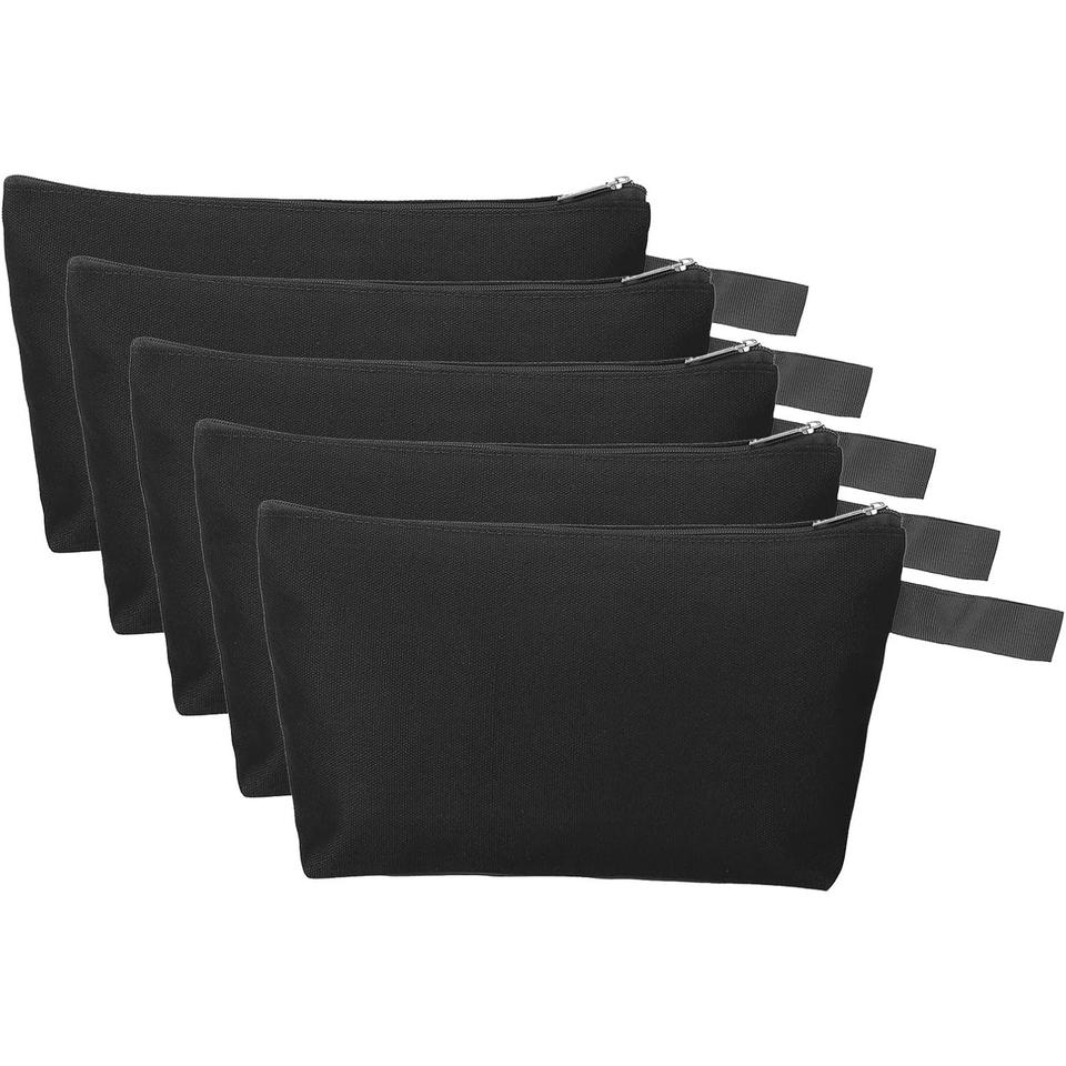 New Arrival Recycled Custom Your Own Logo Printed Cosmetics Makeup Bag Black Canvas Zipper Bag