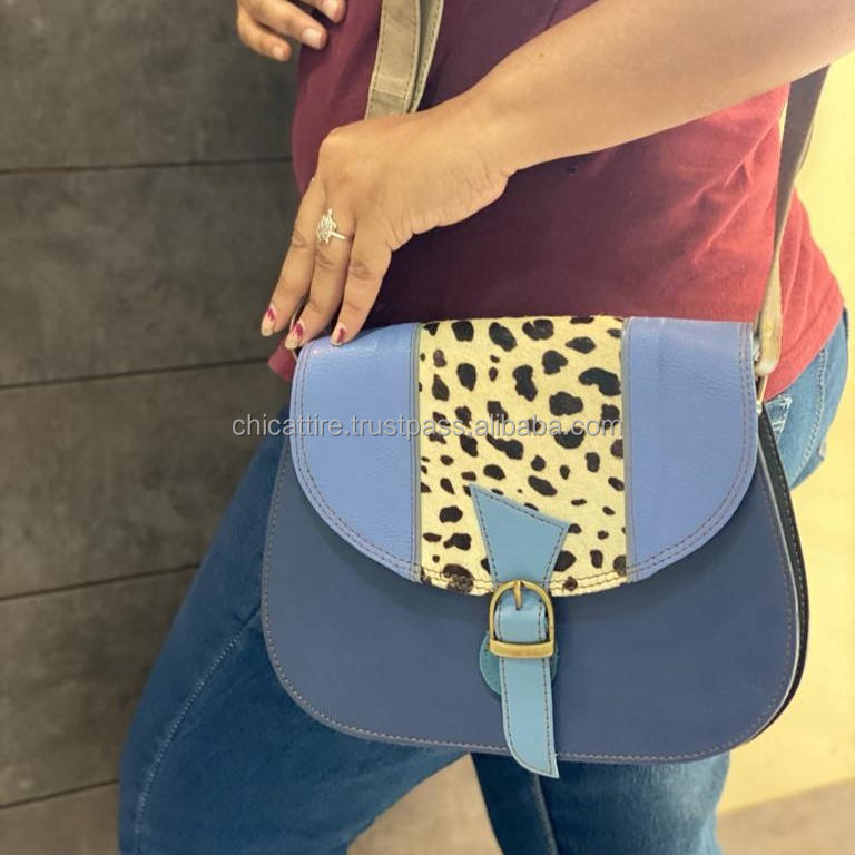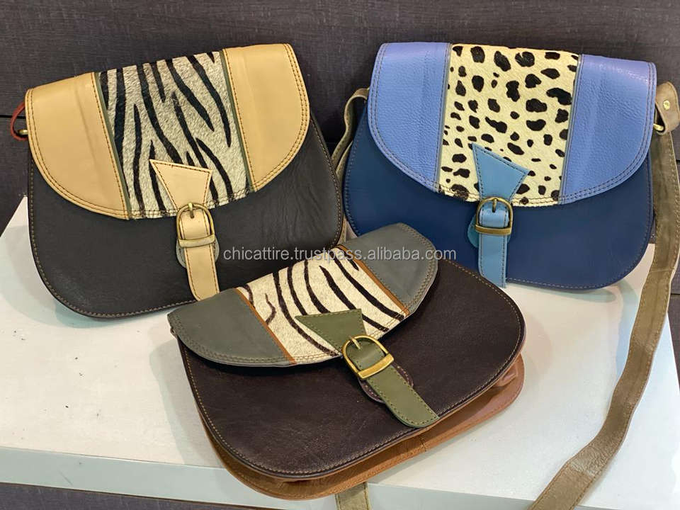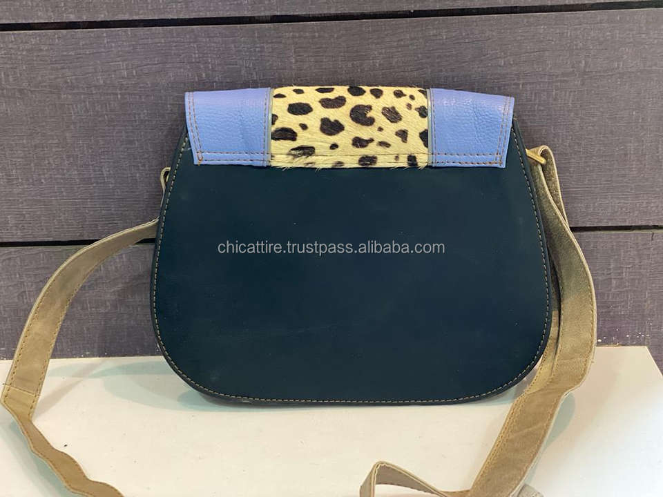 New Arrival Recycled Leather Sling Bag Women Genuine Multi Colorful Crossbody Bag Handcrafted Animal Print Fur Luxury Sling Bag