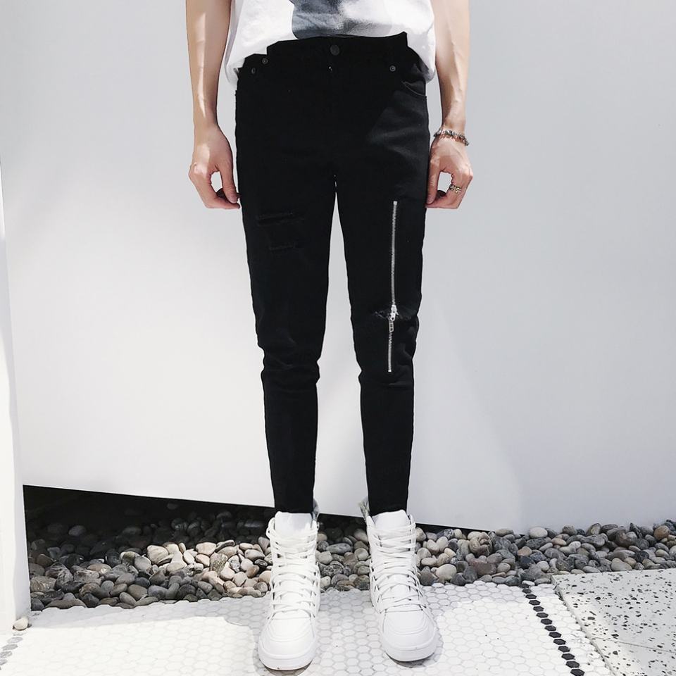 New Arrival Ripped Jeans Men Skinny Destroyed Knee Leg Zippers Biker Jeans Black White Jogger Pants