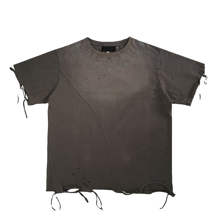 New Arrival Ripped Plain Blank Distressed t Shirts in Bulk Short Sleeve Cropped Rounded Neck Sporting T Shirts For Men