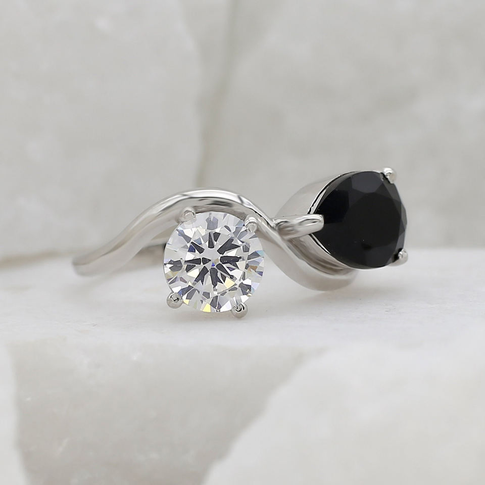 New Arrival Rose Gold 925 Sterling Silver Women's Wedding Ring White Topaz Black Spinel Brilliant Cut Prong Setting Minimalist