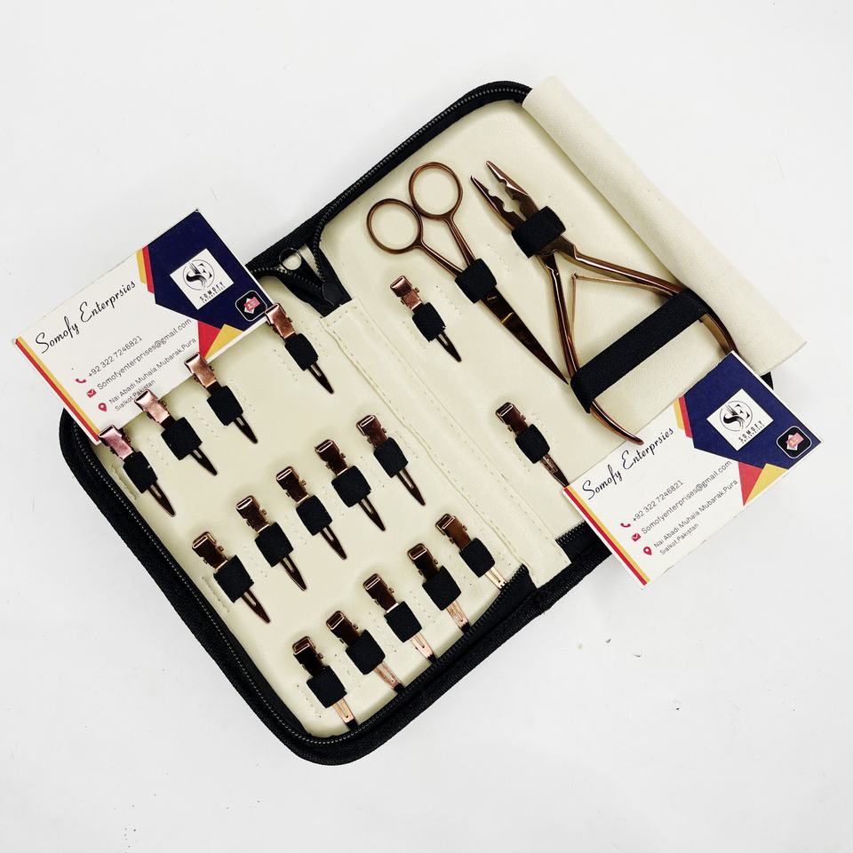New Arrival Rose Gold High Quality Durable Hair Extension Tools Kit Sustainable Mink Tape Pliers Loop Hook Clip Box Needles