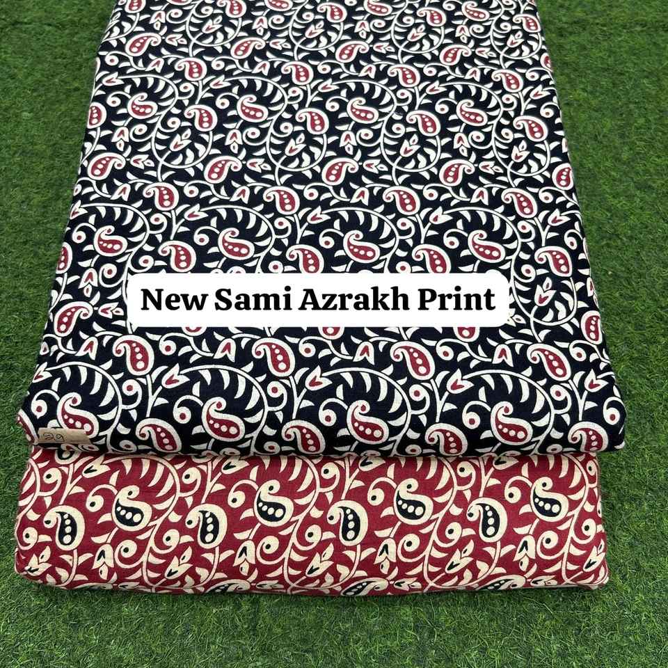 New Arrival Sami Azrakh Print Cotton Fabric Stylish Traditional Design Ideal for Ethnic Wear Kurti Suit and Craft Work