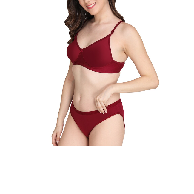 Floral Patterned Powder Pink Underwire Non-Padded Bra Set