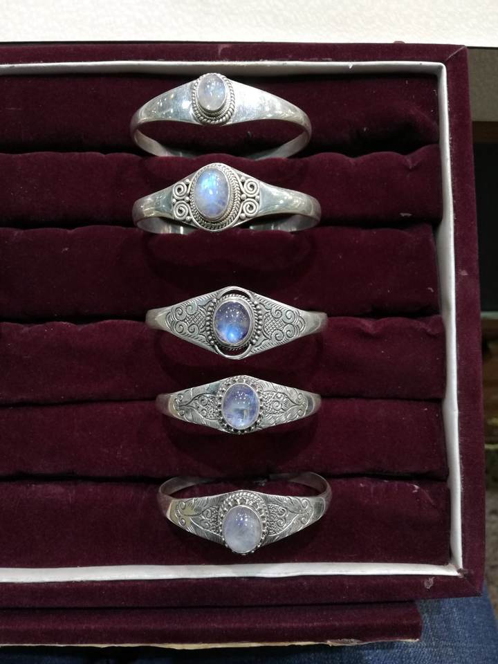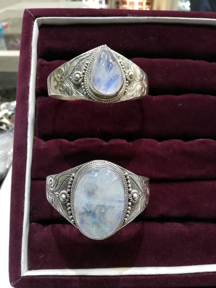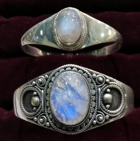 Silver Bangle with Moon Stone:Traditional Design Bangles