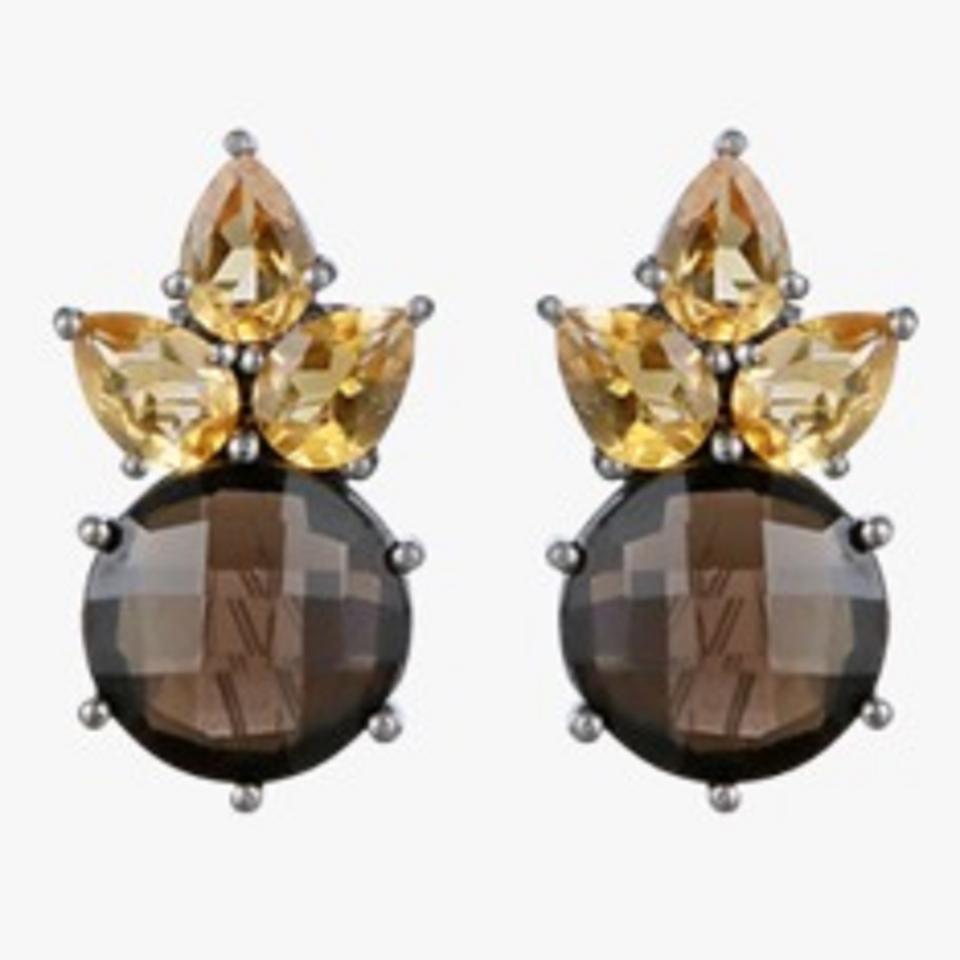 New Arrival Smoky Quartz & Citrine Hydro Gemstone 925 Sterling Silver Round and Pear Shape Earrings