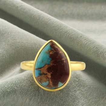 Product Name:Natural Chrysocolla Copper 925 Sterling Silver Gold Plated Ring