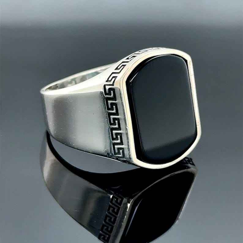 New Arrival Solid 925 Sterling Silver 10x14mm Natural Black Onyx Bezel Setting Bohemian Unisex Greek Ring Handmade Gold Plated