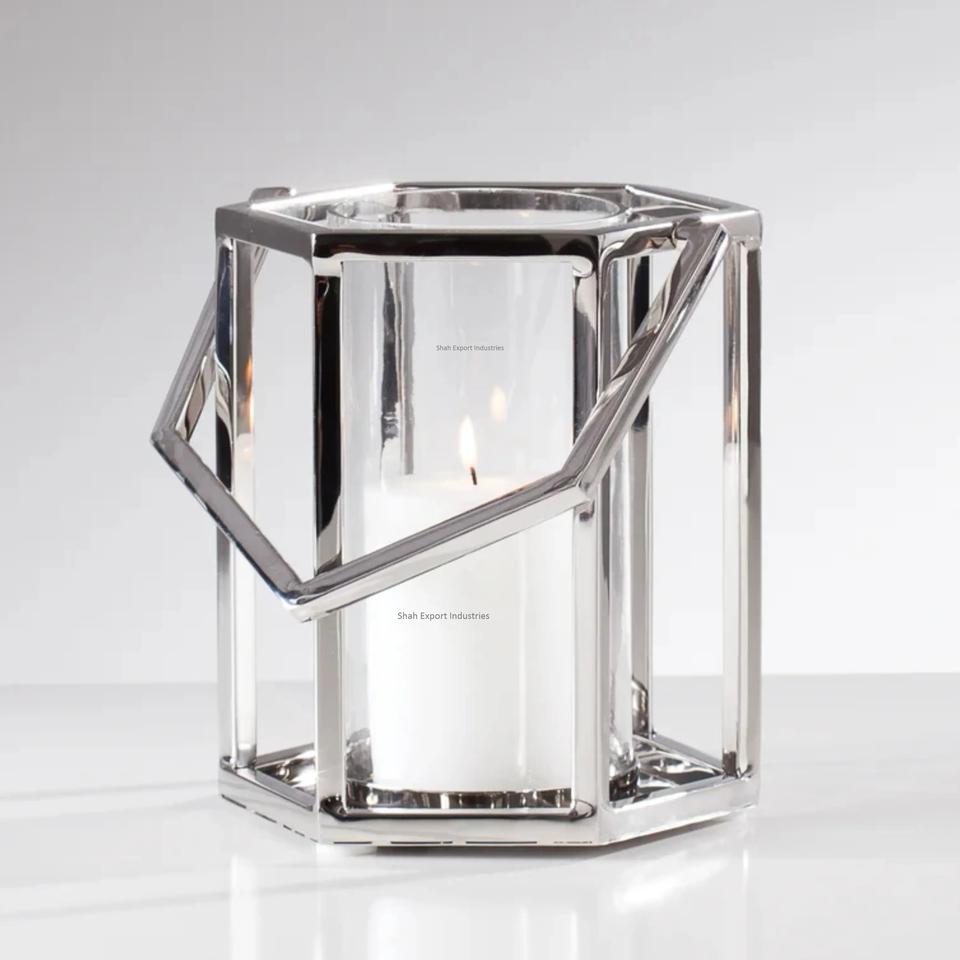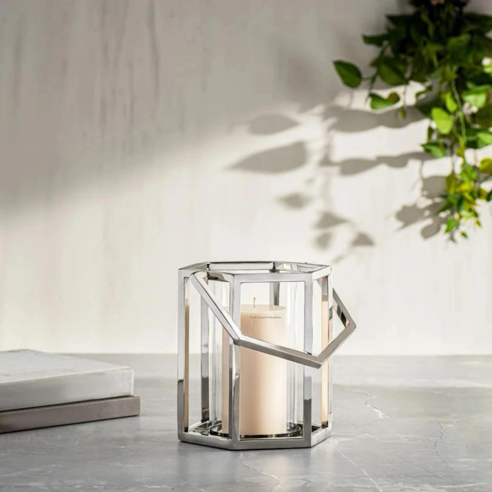 New Arrival Stainless Steel Chrome Glass Metal Hurricanes Candle Lantern for Home Event Party Tabletop Decorative